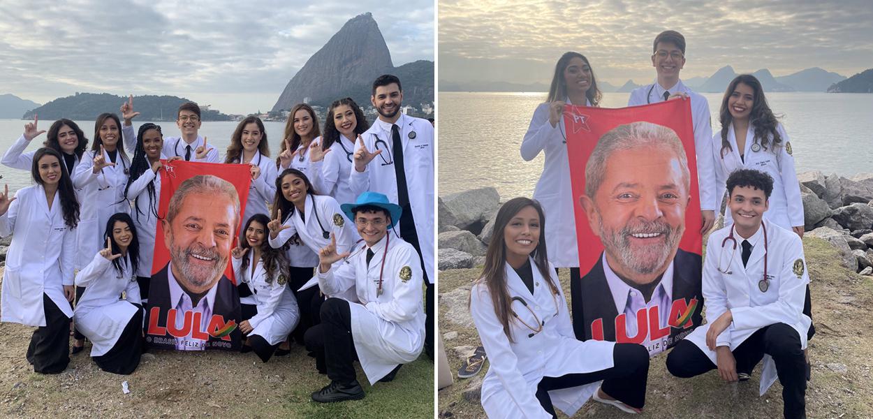 Formandos em Medicina da UFRJ compartilham foto com a toalha de Lula e ex-presidente os parabeniza