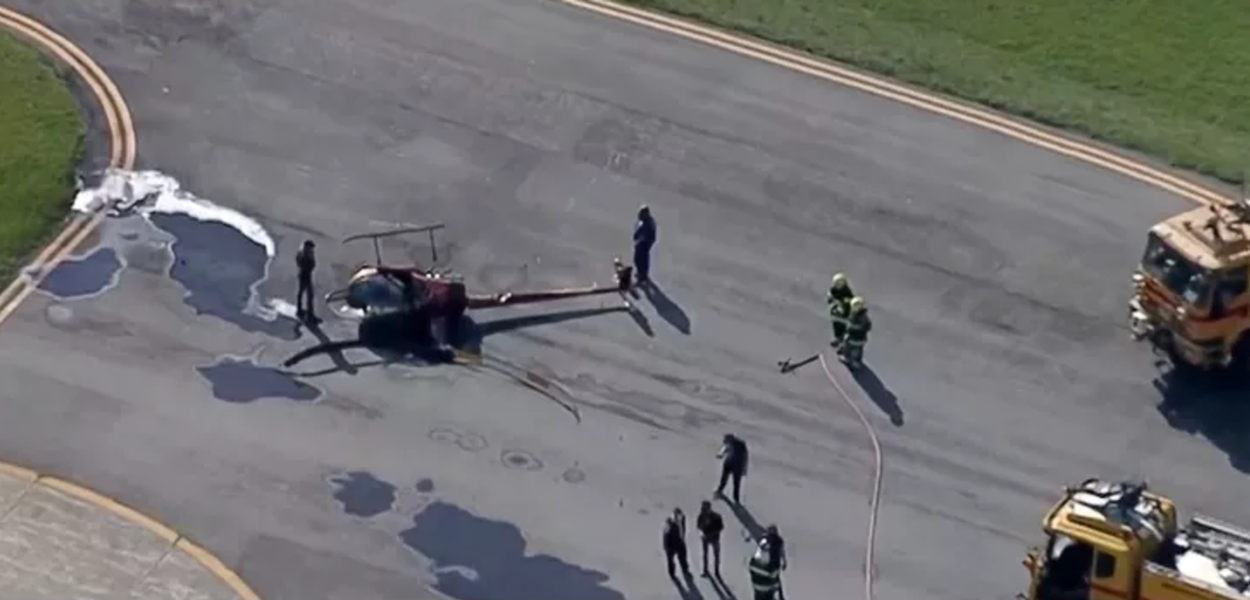 Helicóptero tomba durante pouso no Aeroporto Campo de Marte, em São Paulo