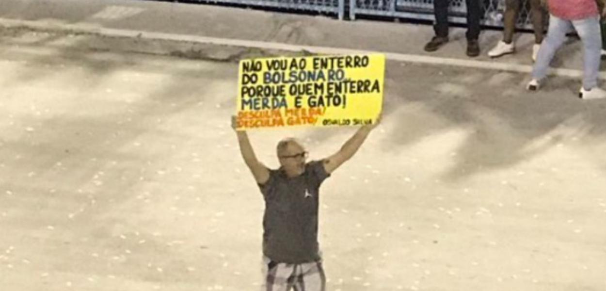 Público reagiu aos gritos de "Olê, olê, olê, olá. Lula, Lula" após um homem levantar uma placa com a frase “não vou ao enterro do Bolsonaro porque quem enterra merda é gato"