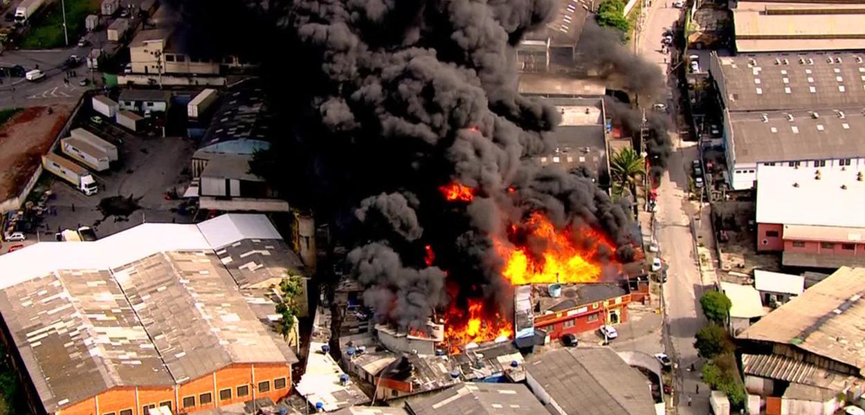 As chamas que atingiram um galpão de uma indústria química no bairro de Cumbica, em Guarulhos (SP) avançaram para casas vizinhas ao imóvel