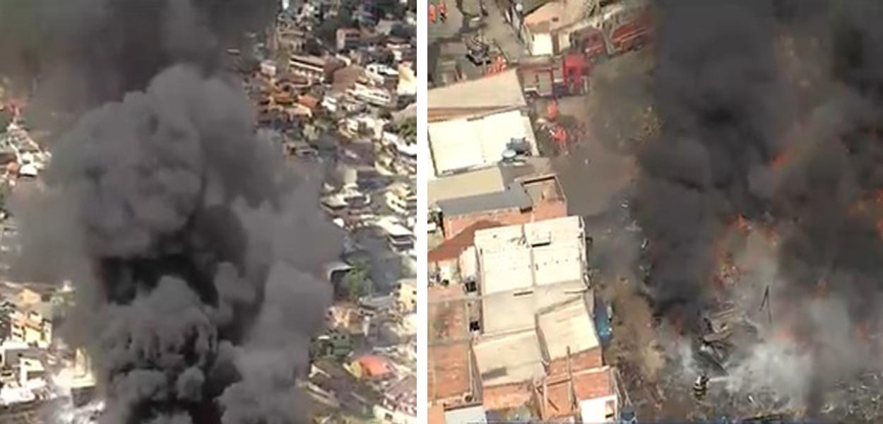 Foi possível ver a espessa fumaça até do centro de Belo Horizonte. Incêndio começou em um galpão de materiais recicláveis no município de Contagem, na Região Metropolitana de Belo Horizonte