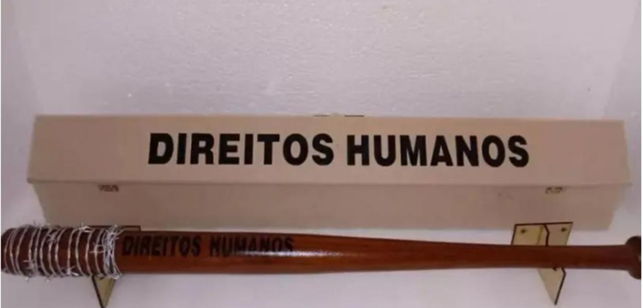 247 - Uma loja no Boulevard Shopping Bauru, interior de São Paulo, foi notificada a retirar de sua vitrine tacos de beisebol à venda com palavras como "direitos humanos", "diálogo", "freio de mano" e "punisher" ["justiceiro", em inglês].