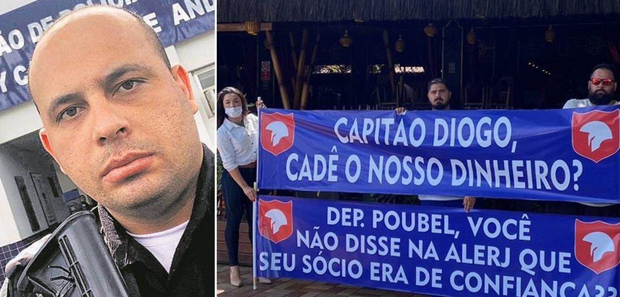 Ainda de acordo com a reportagem, na Buda Lounge, Diogo é sócio do deputado estadual bolsonarista Fillipe Poubel (PSL), que também foi alvo de críticas dos manifestantes. "Você não disse na Alerj que seu sócio era de confiança?", dizia uma das faixas portadas pelo grupo, lembrando homenagens públicas feitas pelo parlamentar ao amigo pessoal. A quem o procura diretamente, Poubel tem alegado que não tem qualquer vínculo com outros negócios do ex-PM. E que ele próprio tem parentes que investiram junto a Diogo e também não receberam o rendimento acordado.
