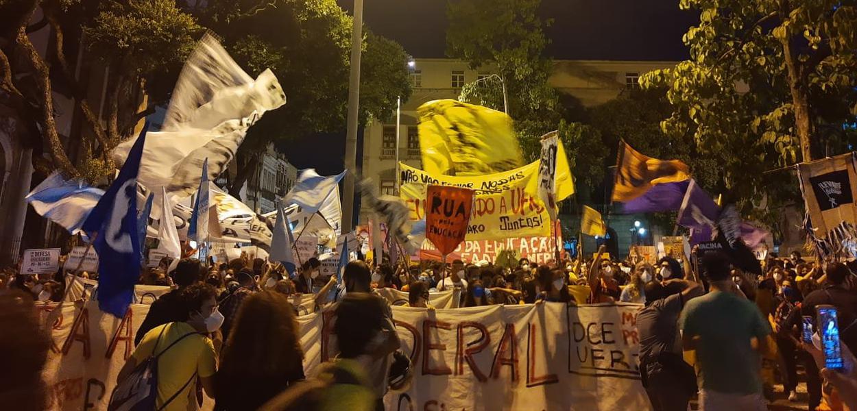 A concentração do ato em favor da UFRJ foi no Instituto de Filosofia e Ciências Sociais (IFCS), no centro da cidade. Os cortes ameaçam a universidade, uma das mais importantes do país, a fechar as portas no segundo semestre