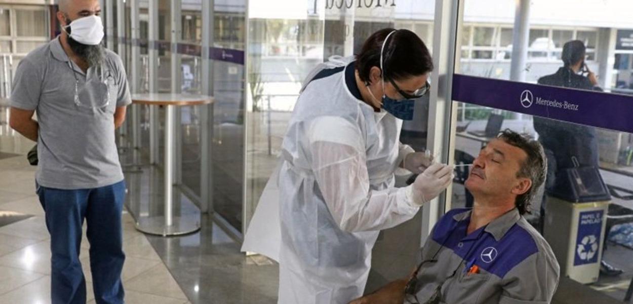 Antes da Mercedes, a testagem solicitada pelos metalúrgicos foi realizada na Volkswagen, em São Bernardo, em agosto. De acordo com o sindicato, naquele momento 570 trabalhadores já haviam sido infectados. Foram 14 mil testes na montadora, entre mão de obra direta e terceirizada.