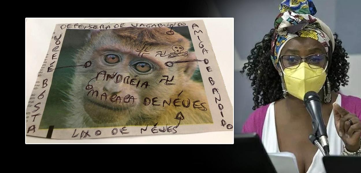 247 - Uma carta foi encaminhada ao gabinete da deputada estadual Andréia de Jesus (PT) na Assembleia Legislativa de Minas Gerais (ALMG) com a foto de um macaco e com frases racistas e até uma suástica desenhada.