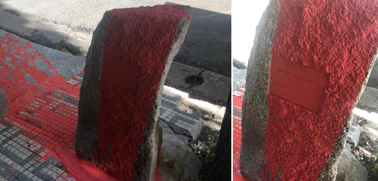 Monumento a Marighella amanhece coberto de tinta vermelha em SP