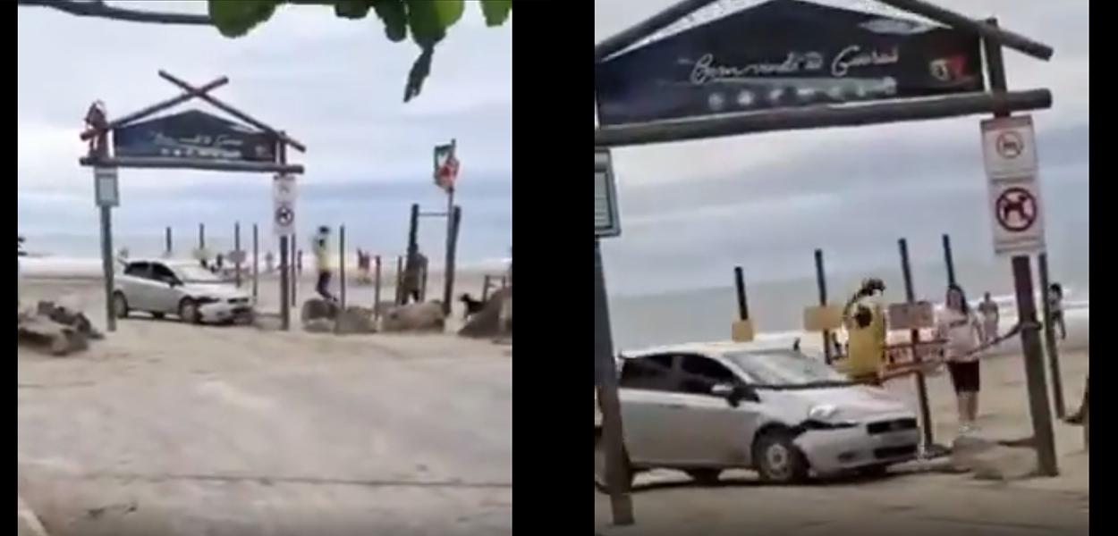 Morador joga pedras contra veículo que invadiu praia; motorista tenta atropelá-lo e bate o carro (vídeo)