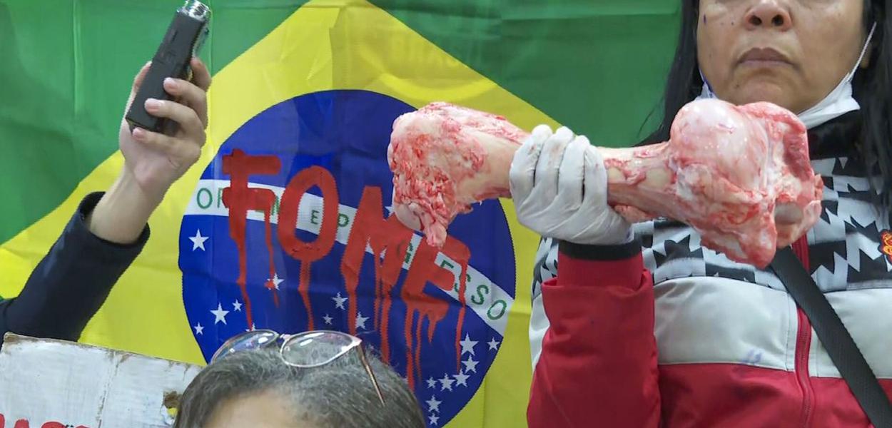 247 - Membros do Movimento dos Trabalhadores Sem-Teto (MTST) fizeram um protesto contra a fome nesta quarta-feira (8) dentro do shopping Iguatemi, na Av. Faria Lima, um dos mais luxuosos da capital paulista. Manifestantes levataram bandeiras do Brasil com os dizeres "fome", e também carregavam pedaços de ossos, em referência às carcaças buscadas por pessoas em situação de fome.