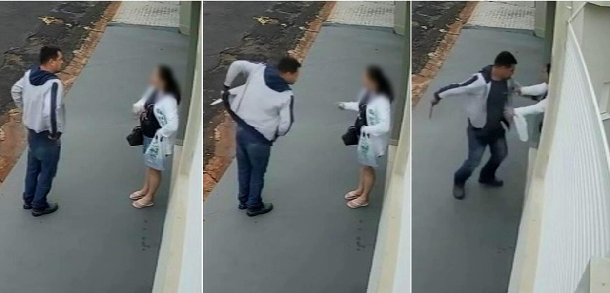 A cena foi registrada por uma câmera de segurança. O suspeito é o ex-marido da vítima, que tem 39 anos.