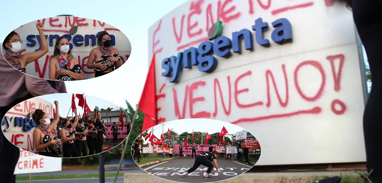 Manifestação mira denúncias contra o pacote do veneno em frente a Syngenta, empresa que é líder do mercado mundial de agrotóxicos