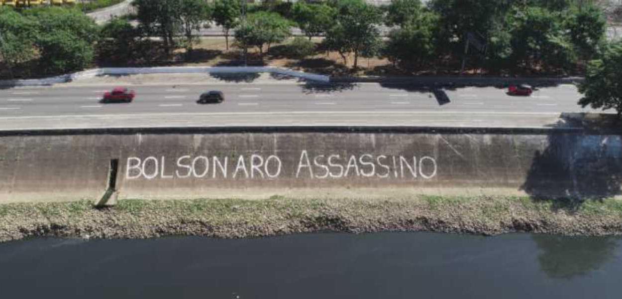 Pichações gigantes contra o presidente feitas em ao menos três pontos da capital paulista