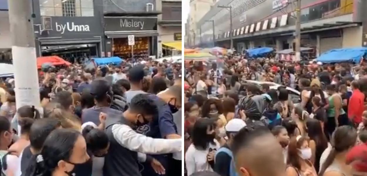 Nas imagens, os pedestres promovem até um empurra empurra para conseguir se deslocarem, tamanha a concentração de pessoas.