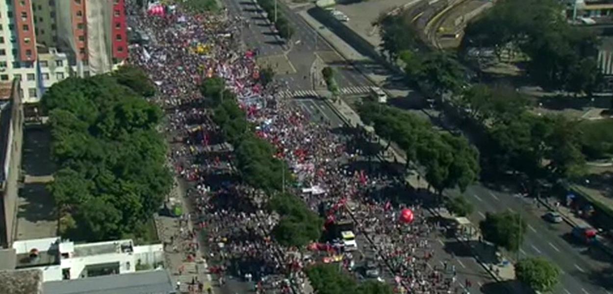 247 - A Avenida Presidente Vargas, uma das vias de acesso ao centro do município do Rio, já está tomada de manifestantes que gritam pelo afastamento de Jair Bolsonaro.