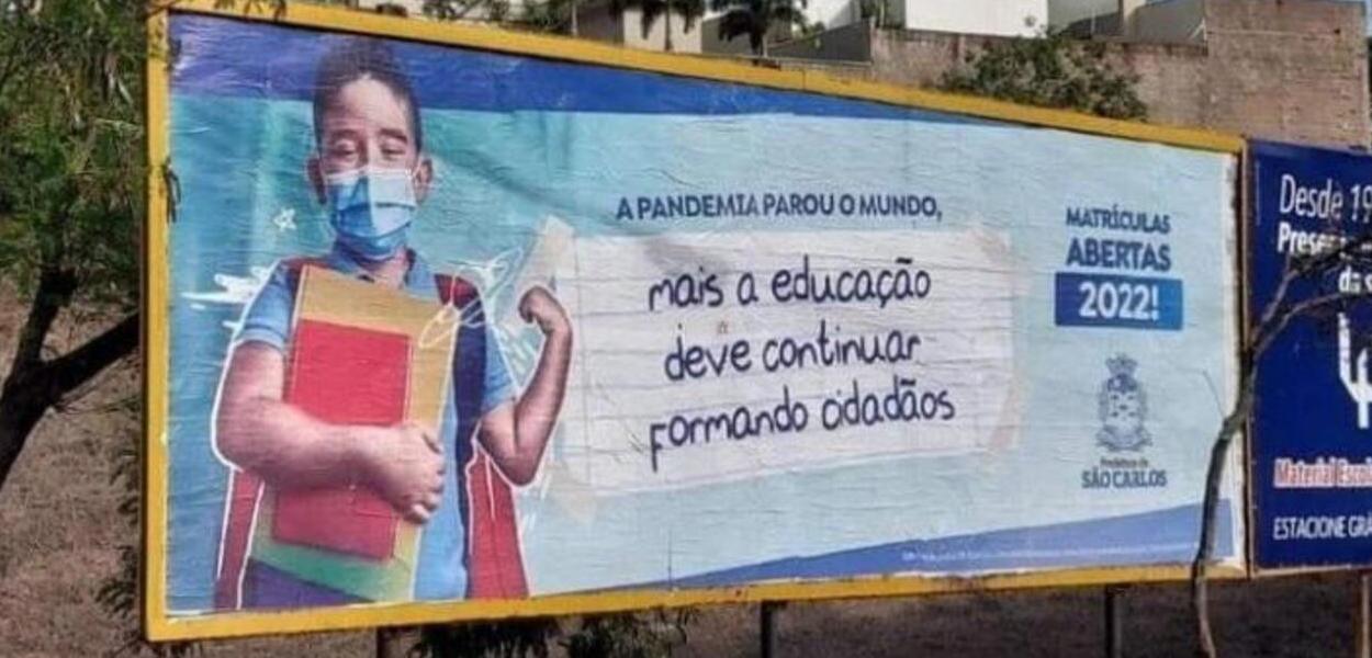 247 - Circula nas redes sociais a foto de um outdoor supostamente instalado na cidade de São Carlos, no interior de São Paulo, com um grave erro ortográfico.