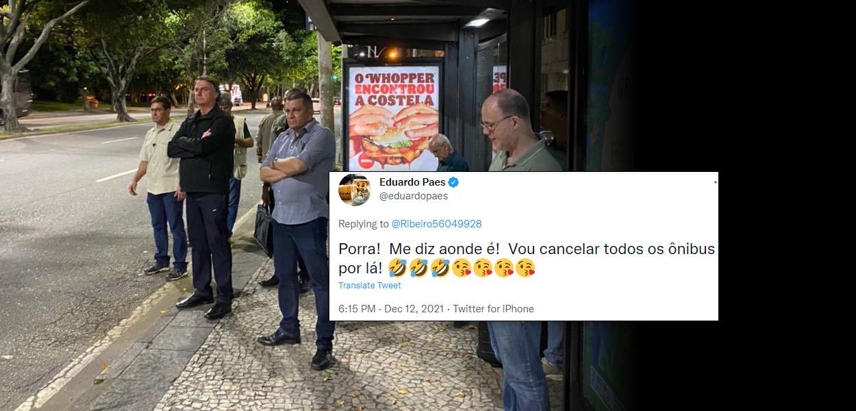Paes ironiza foto de Bolsonaro aguardando ônibus: “me diz onde é! Vou cancelar todos os ônibus”