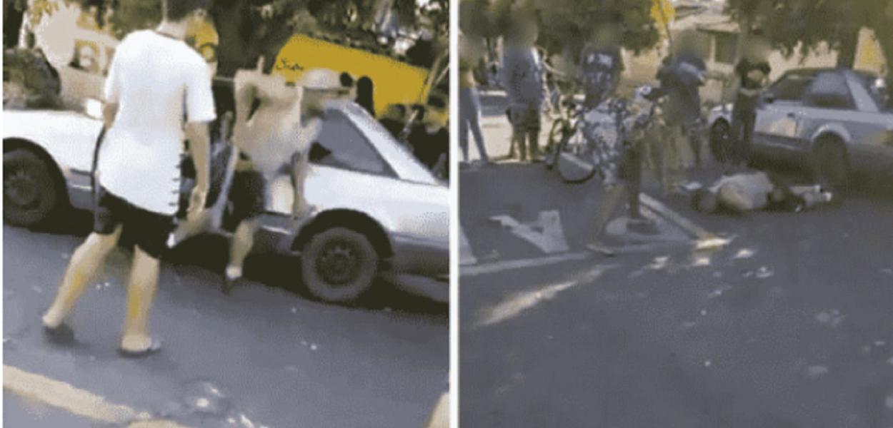 Metrópoles - Em um primeiro momento, o pai estava dentro do carro e houve a discussão com os jovens. Na sequência, ele saiu do veículo com um pedaço de madeira na mão e seguiu em direção ao grupo.