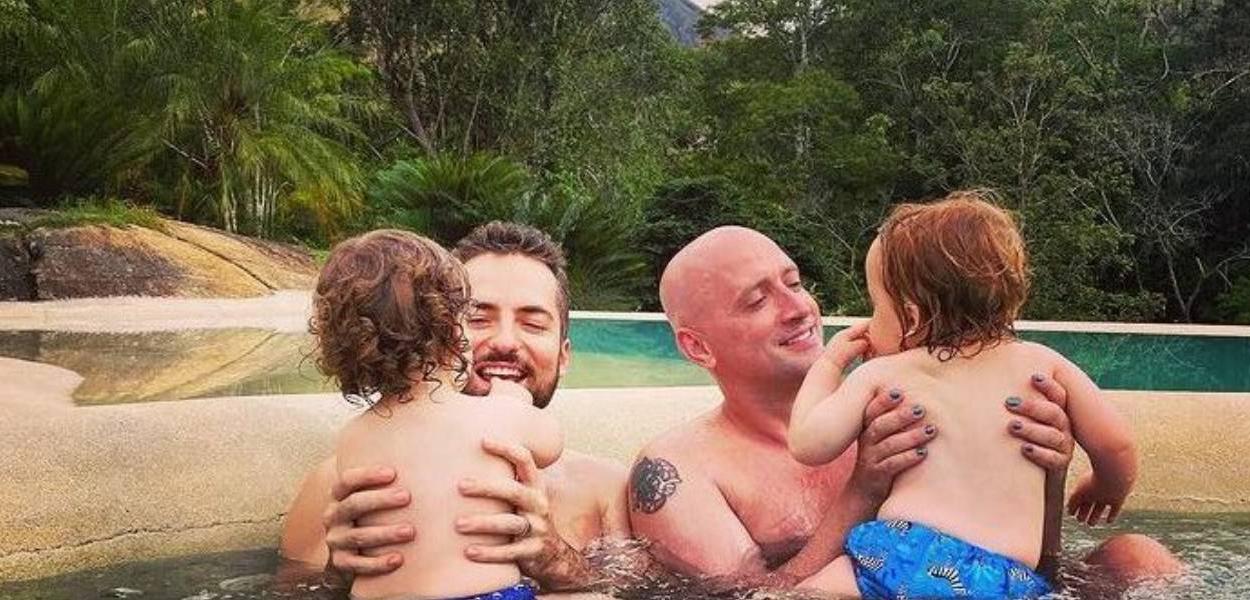 Gustavo, de 42 anos, é casado com o médico Thales Bretas, com quem tem dois bebês.