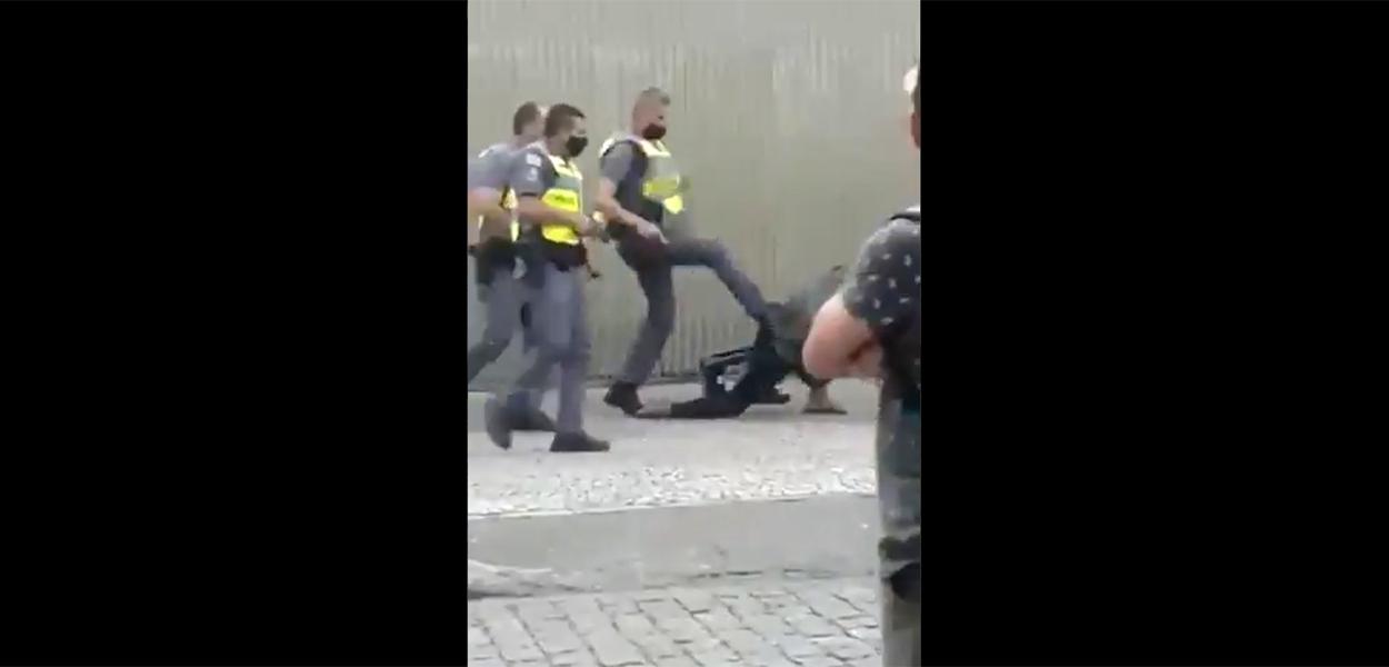 PM agride mulher a pontapés no Vale do Anhangabaú, em São Paulo (vídeo)