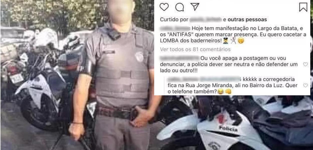 O policial militar afastado de suas funções no estado de São Paulo afirmou que iria “cacetar a lomba” dos manifestantes que participavam de atos contra Jair Bolsonaro, o fascismo e o racismo na Zona Oeste da capital paulista