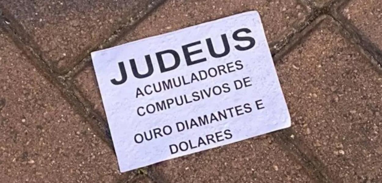 Os papéis traziam mensagens como: "Judeus acumuladores compulsivos de ouro diamante e dólares"