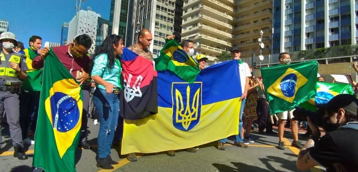 Reportagem dos jornalistas Leo Branco e Sérgio Roxo no Globo aponta que os bolsonaristas carregaram em trio elétrico de sua manifestação na Avenida Paulista, em São Paulo, uma bandeira associada a um grupo nacionalista ucraniano com ideário de extrema-direita. A polícia está investigando as relações com a simbologia nazista.