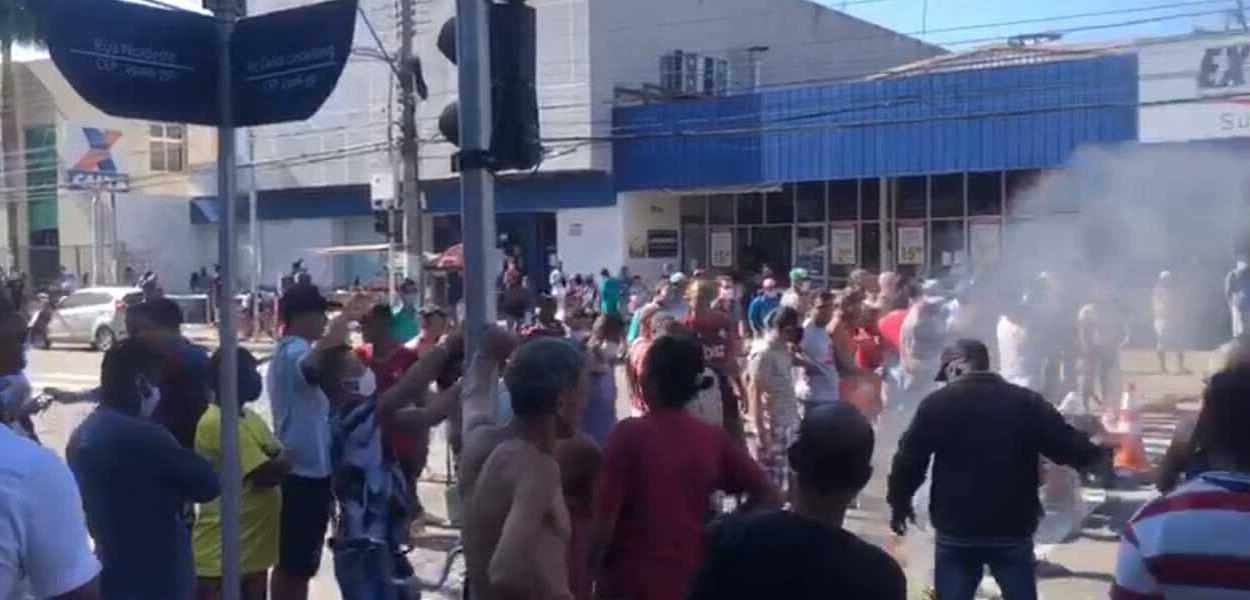 Populares colocam fogo em frente à agência fechada da Caixa no Espírito Santo