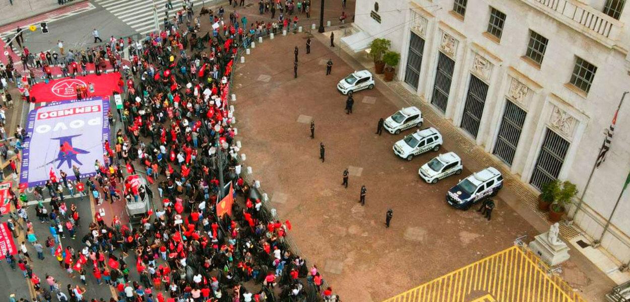 Revista Fórum - Centenas de militantes do Movimento dos Trabalhadores Sem Teto (MTST) realizaram, nesta quarta-feira (13), uma passeata no centro de São Paulo (SP) até a sede da prefeitura capital paulista, em protesto pelo direito à moradia, contra os despejos e contra a falta de diálogo do prefeito Ricardo Nunes (MDB).