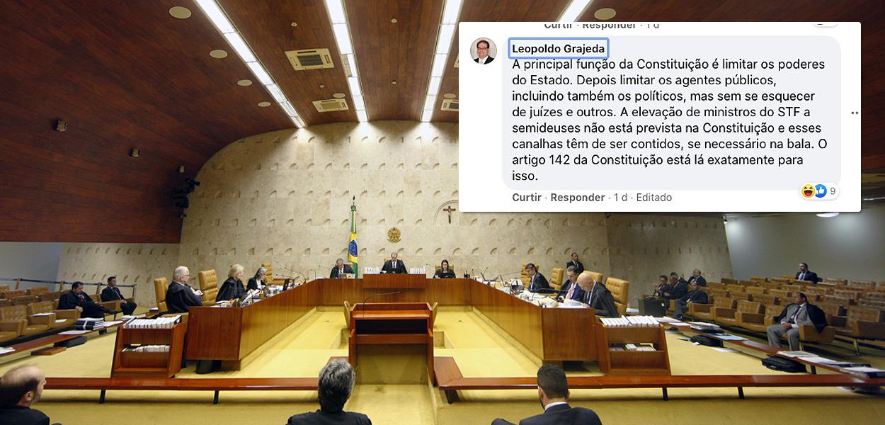 “A elevação de ministros do STF a semideuses não está prevista na Constituição e esses canalhas têm de ser contidos, se necessário na bala”, escreveu Leopoldo Grajeda
