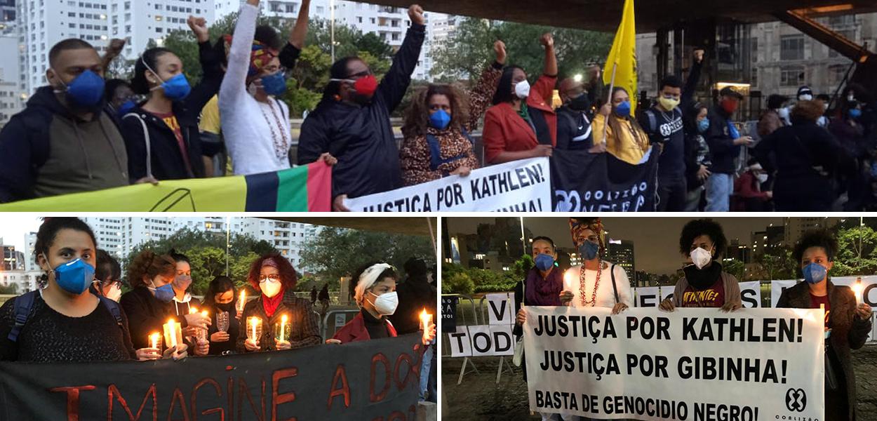 A Coalizão Negra por Direitos realiza um ato na Avenida Paulista, em São Paulo, em memória de Kathlen Romeu, Gibinha e outras vítimas da ação da polícia. O protesto pede justiça e o fim do genocídio do povo negro