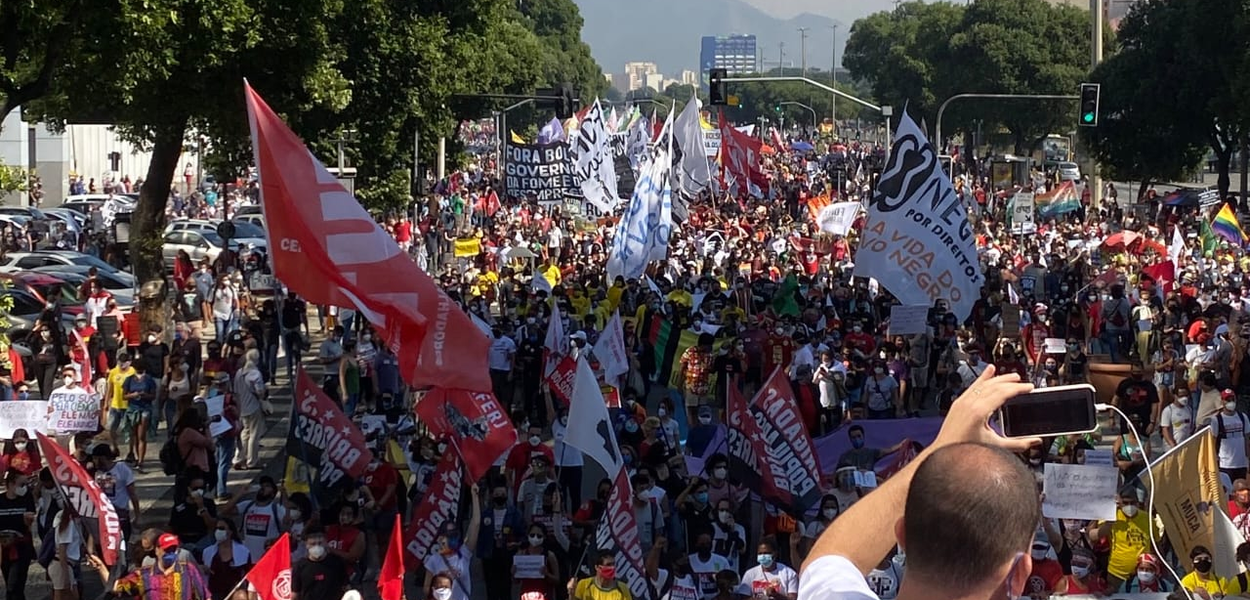 Rede Brasil Atual - O Rio de Janeiro reuniu neste #3J milhares de manifestantes que pediram o impeachment do presidente Jair Bolsonaro, a vacinação contra a covid-19 e pagamento de auxílio emergencial de R$ 600,00. A concentração começou pela manhã no Monumento à Zumbi, no Centro. E seguiram em direção à Igreja da Calendária, em caminhada pela avenida, chegando a ocupar três faixas de pista.