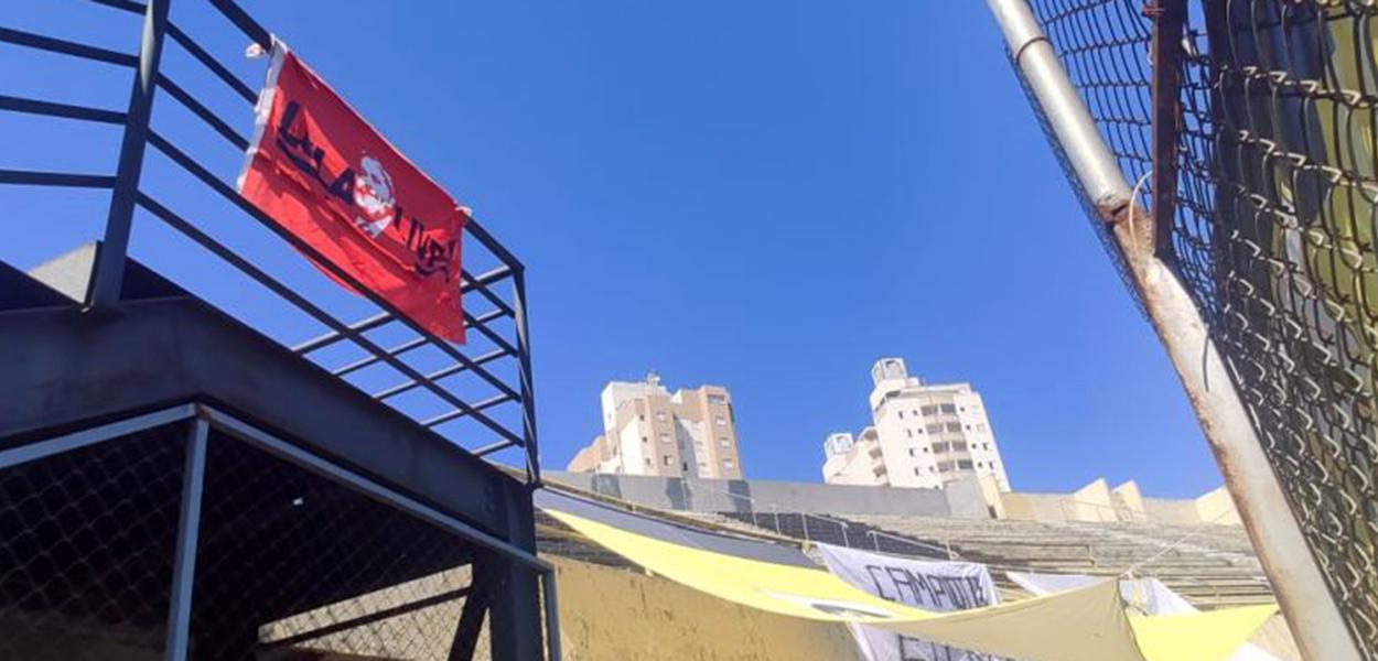 Torcida do São Bernardo leva faixa “Lula Livre” ao estádio onde ex-presidente liderou greves históricas