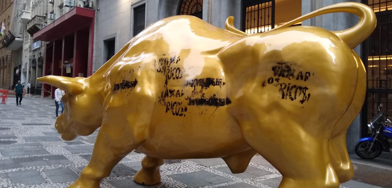 Touro de ouro cafona recebe nova intervenção: "taxar os ricos"