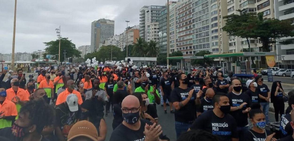 247- Trabalhadores do setor de entretenimento fizeram uma manifestação na orla de Copacabana na manhã deste domingo (16), reivindicando a liberação da realização de eventos musicais pela prefeitura.
