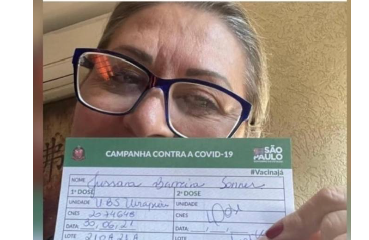 Nas redes sociais, ela afirmou que as duas doses da Coronavac em fevereiro e março e uma dose da vacina da Janssen na quarta-feira, 30. A combinação nunca foi testada e pode trazer risco para quem recebe os imunizantes.