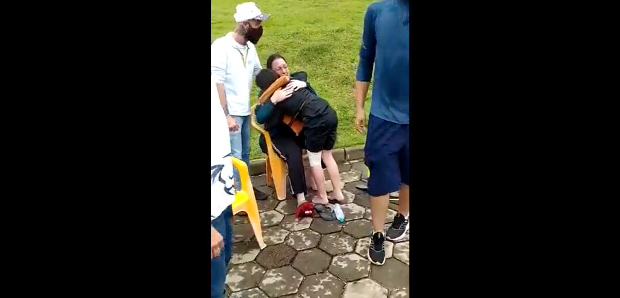 Nas imagens é possível ver um casal chorando ao lado dos filhos pequenos.