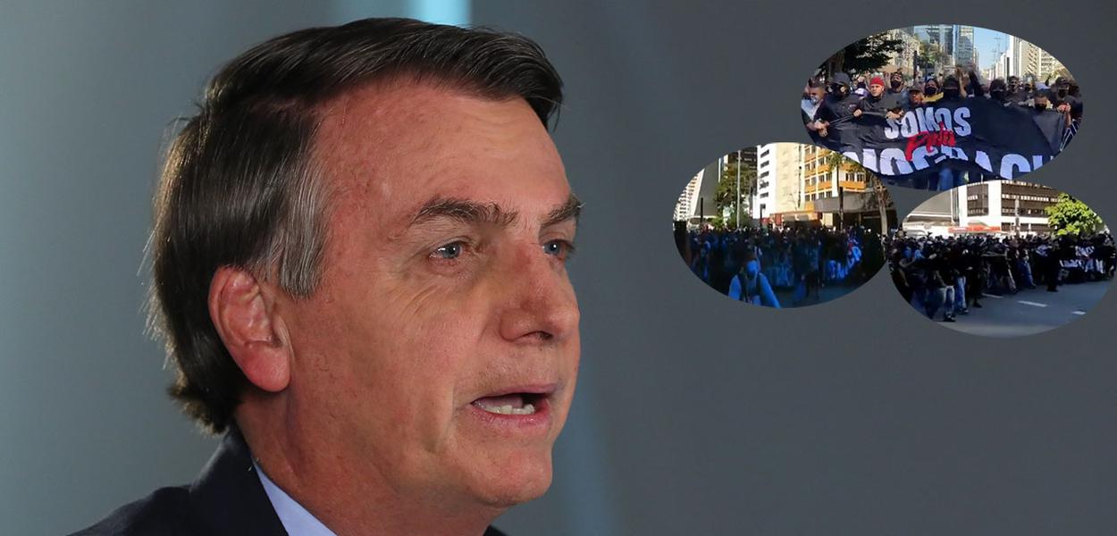 Na Avenia Paulista, torcidas organizadas também foram às ruas contra estímulos a manifestações pelo fechamento do Congresso Nacional e do Supremo Tribunal Federal por parte de Jair Bolsonaro. "Democracia", gritam os manifestantes.