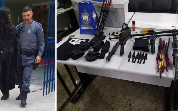 Vestido de preto, um ex-aluno de uma escola em Vitória (ES) também estava armado com armas de disparo de flechas