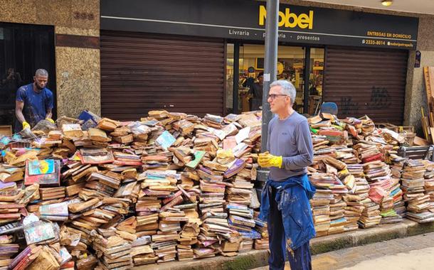 Material estava armazenado no subsolo da loja, que ficou inundado. Livros para venda ficaram preservados