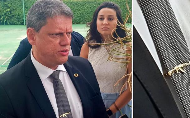 Tarcísio de Freitas tem buscado se aproximar ideologicamente do governo. O mesmo prendedor de gravata é usado com frequência por Eduardo Bolsonaro