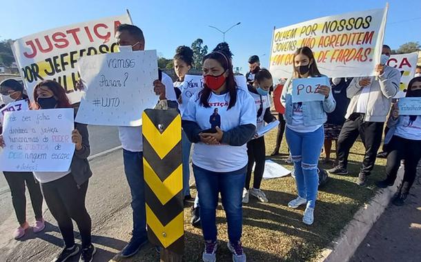 Com faixas e cartazes, manifestantes pediam por justiça e paz. Jefferson Guilherme da Costa Santos, de 20 anos, morreu após ser baleado por militares, na porta de casa, no bairro Veneza. Policiais...