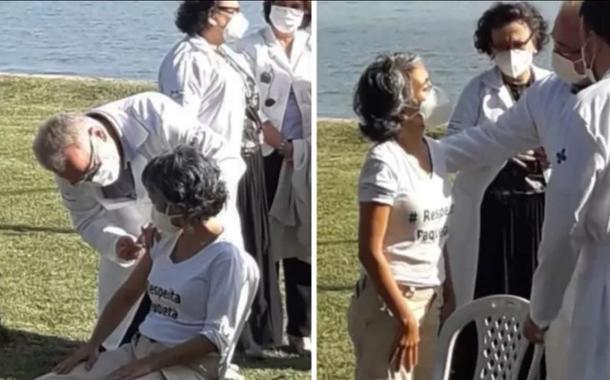 "Estou feliz por estar vacinada, mas não queria ser vacinada por você", disse a moradora da Ilha de Paquetá (RJ) Conceição Campo em recado ao ministro da Saúde, Marcelo Queiroga