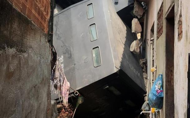 Caveirão da PM cai em quintal de casa no Morro do Urubu, no Rio