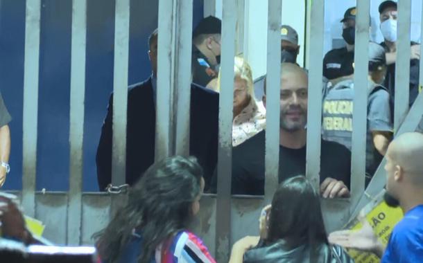 Ao sair da sede da PF no Rio de Janeiro, o deputado federal bolsonarista Daniel Silveira (PSL) acenou para apoiadores que o esperavam do lado de fora do local