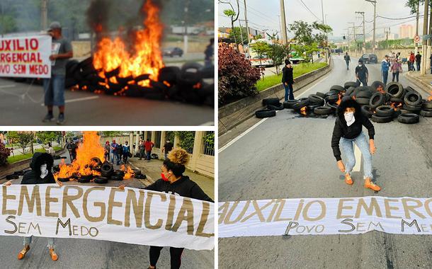 Manifestantes ligados ao MTST protestam nas principais avenidas de São Paulo para cobrar do governo a urgência da retomada do auxílio emergencial; também exigem ampliação e mais rapidez da...