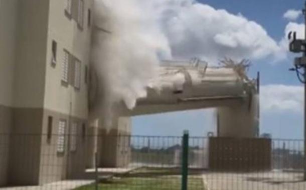 Caixas d’água cedem em condomínio popular e deixam pessoa ferida (vídeo)
