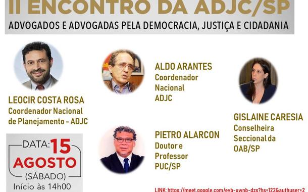 Os Advogados e Advogadas pela Democracia, Justiça e Cidadania (ADJC) realiza congresso estadual neste sábado (15) em São Paulo