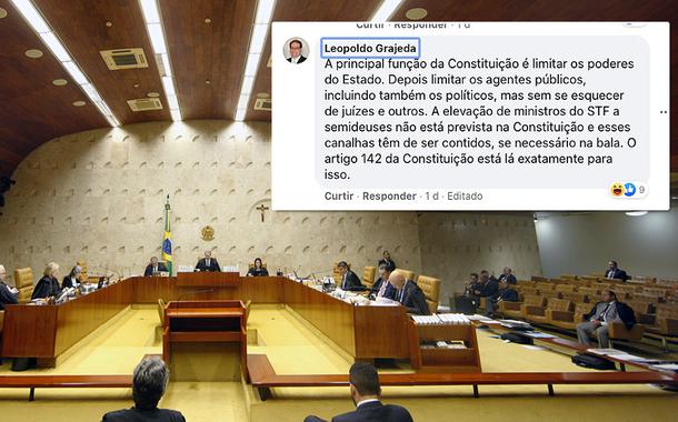 “A elevação de ministros do STF a semideuses não está prevista na Constituição e esses canalhas têm de ser contidos, se necessário na bala”, escreveu Leopoldo Grajeda
