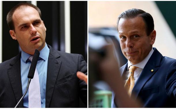 "Ditadorzinho de meia tigela (sic). Sem a caneta na mão e largado numa praça pública se borra todo", escreveu o filho de Jair Bolsonaro.